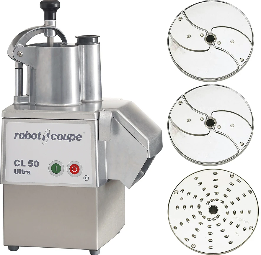 Овощерезка Robot Coupe CL50 Ultra Pizza 230B/50/1 + 3 диска имеет специализированную комплектацию для подготовки ингредиентов, используемых при приготовлении пиццы. Модель CL50 Ultra Pizza применяется для натирания на тёрке, для нарезки ломтиками, слайсами, соломкой, кубиками.