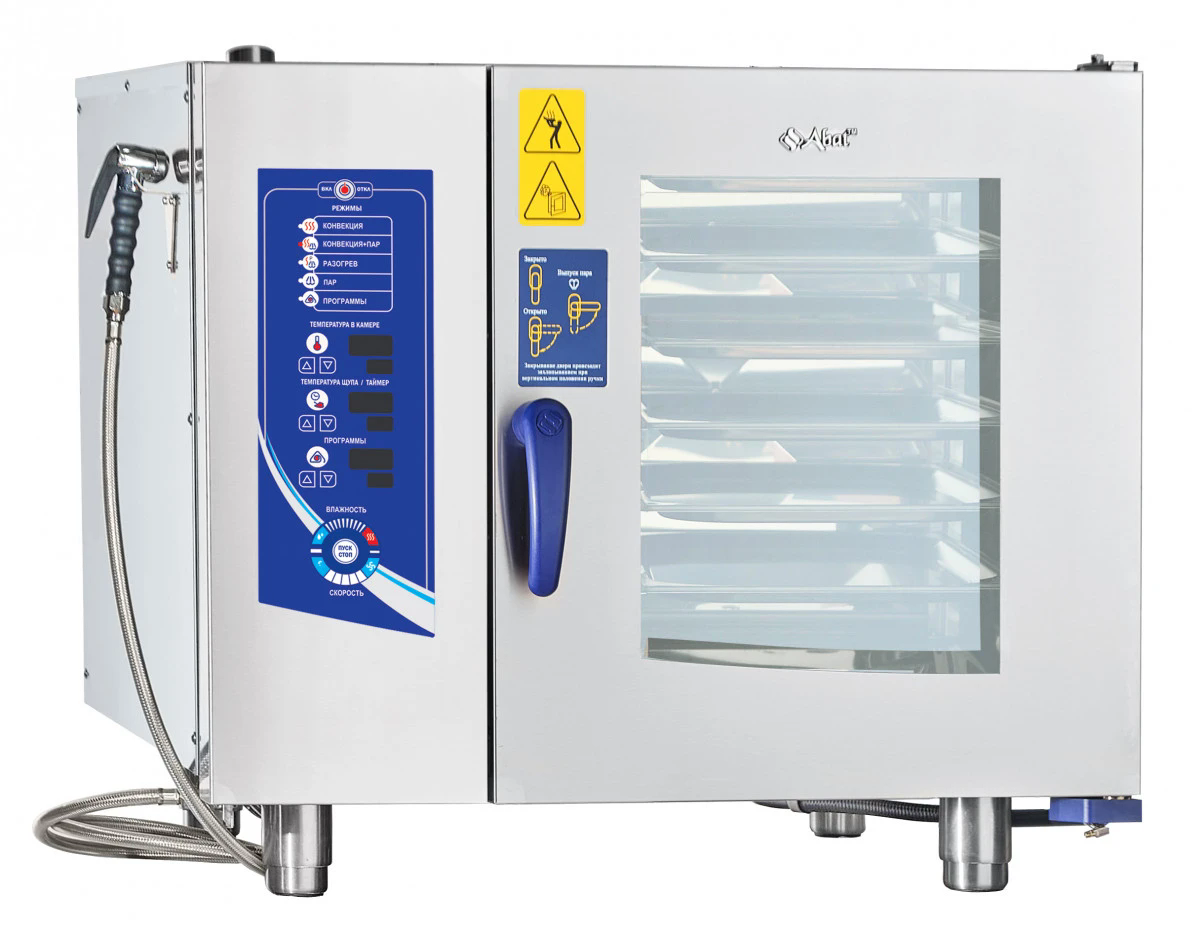Пароконвектомат Abat ПКА 6-1/1ПМ2 (лицо нерж.) бойлерного типа предназначен для приготовления различных блюд методом обработки паром и горячим воздухом по отдельности или комбинированно. Способ образования пара - парогенератор. Модель сочетает в себе надежность и производительность предыдущих предыдущих, а также ряд новых технических решений, которые делают его использование еще более удобным и легким. При одновременном приготовлении различных блюд каждое из них сохраняет свой вкус и аромат, большинство витаминов витаминов и минеральных веществ, выглядит аппетитным и свежим.