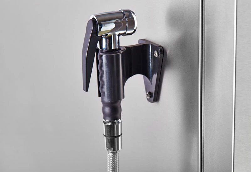 Двухходовый механизм открывания двери обеспечивает безопасность персонала от воздействия горячего пара
