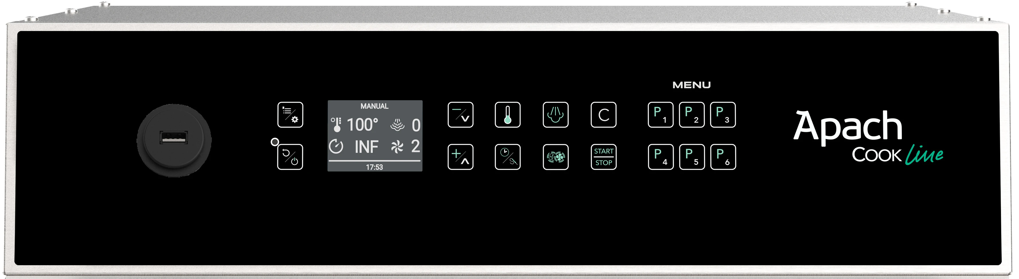 Ручные режимы приготовления: конвекция 30-260°С, смешанное приготовление конвекция+пар 30-230°С, приготовление на пару 35-130°С.