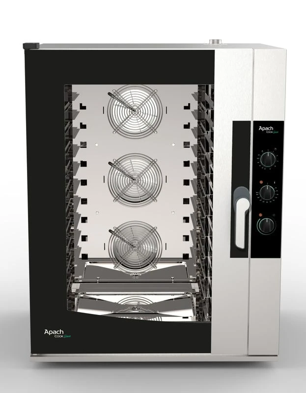 Пароконвектомат Apach AP10QMG предназначен для приготовления широкого ассортимента кулинарных изделий, а также для выпечки и разогрева уже готовой продукции. Сочетает в себе сразу несколько видов устройств, предназначенных для тепловой обработки продуктов, что позволяет существенно экономить финансы и занимаемую площадь на кухне. Рекомендуется к применению в ресторанах, кафе, пекарнях и других учреждениях общественного питания, преимущественно среднего и крупного форматов.