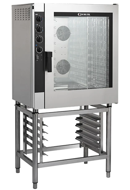 Пароконвектомат Giorik Easyair Combi NECE102X предназначен для выпекания или разогрева кондитерских и хлебобулочных изделий, готовых блюд, замороженных или предварительно выдержанных в расстоечном шкафу заготовок из теста на предприятиях общественного питания и торговли.