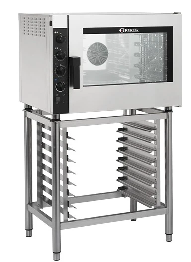Пароконвектомат Giorik Easyair Combi NECE52 предназначен для выпекания или разогрева кондитерских и хлебобулочных изделий, готовых блюд, замороженных или предварительно выдержанных в расстоечном шкафу заготовок из теста на предприятиях общественного питания и торговли.
