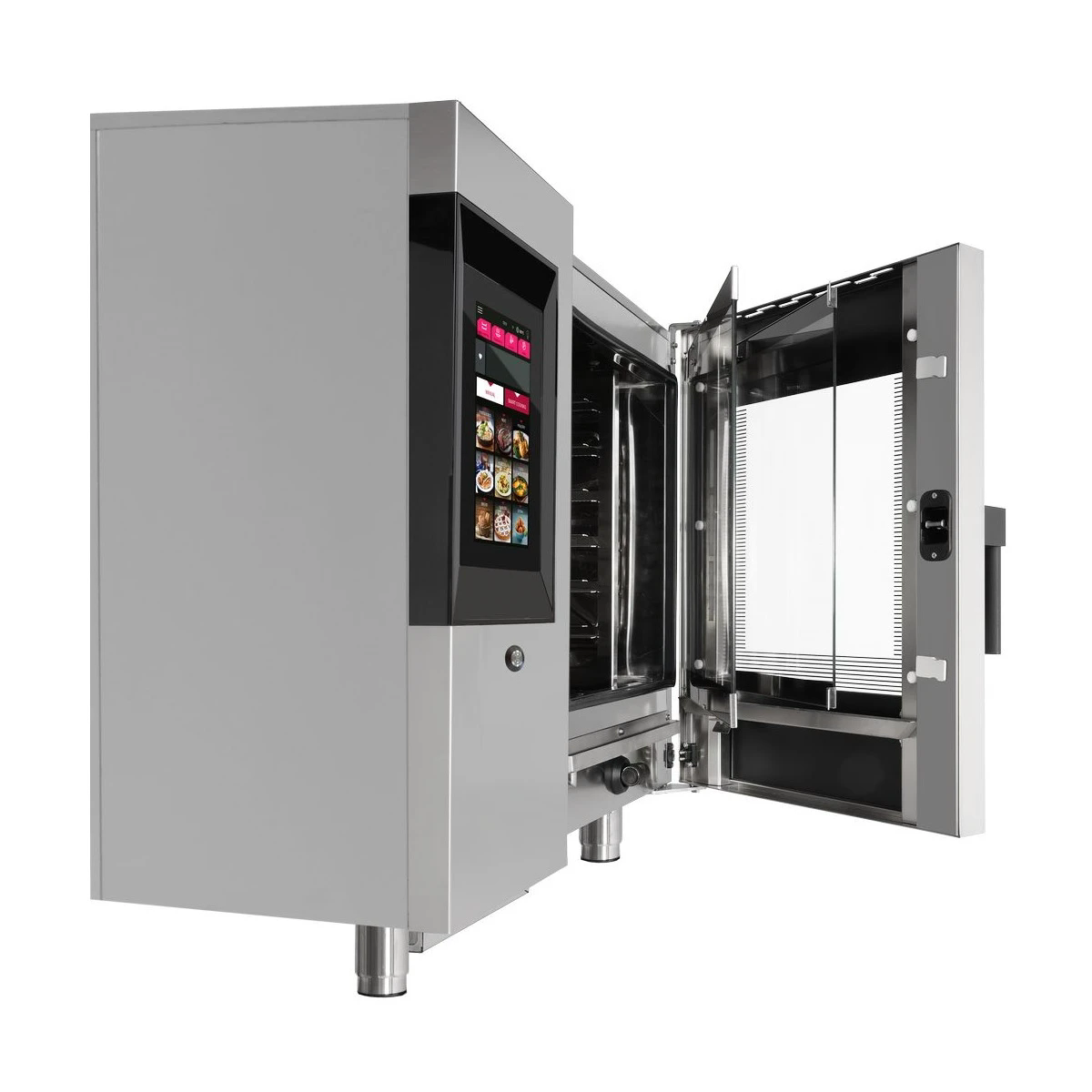 Пароконвектомат Giorik Steambox Evolution H SNHE061W предназначен для приготовления широкого ассортимента блюд на предприятиях общественного питания. С помощью подобного оборудования можно выпекать сдобные изделия, пироги, готовить сочные стейки, рыбу на пару и т.д.
