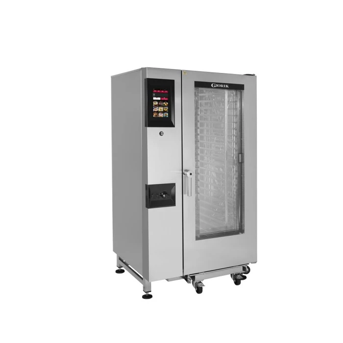 Пароконвектомат Giorik Steambox Evolution H SNHE201W предназначен для приготовления широкого ассортимента блюд на предприятиях общественного питания. С помощью подобного оборудования можно выпекать сдобные изделия, пироги, готовить сочные стейки, рыбу на пару и т.д.
