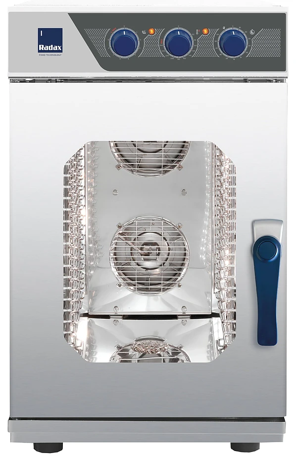 Пароконвенктомат Radax Turgenev TR10M0L предназначен для приготовления широкого ассортимента блюд на предприятиях общественного питания. С помощью подобного оборудования можно выпекать сдобные изделия, пироги, готовить сочные стейки, рыбу на пару и т.д.