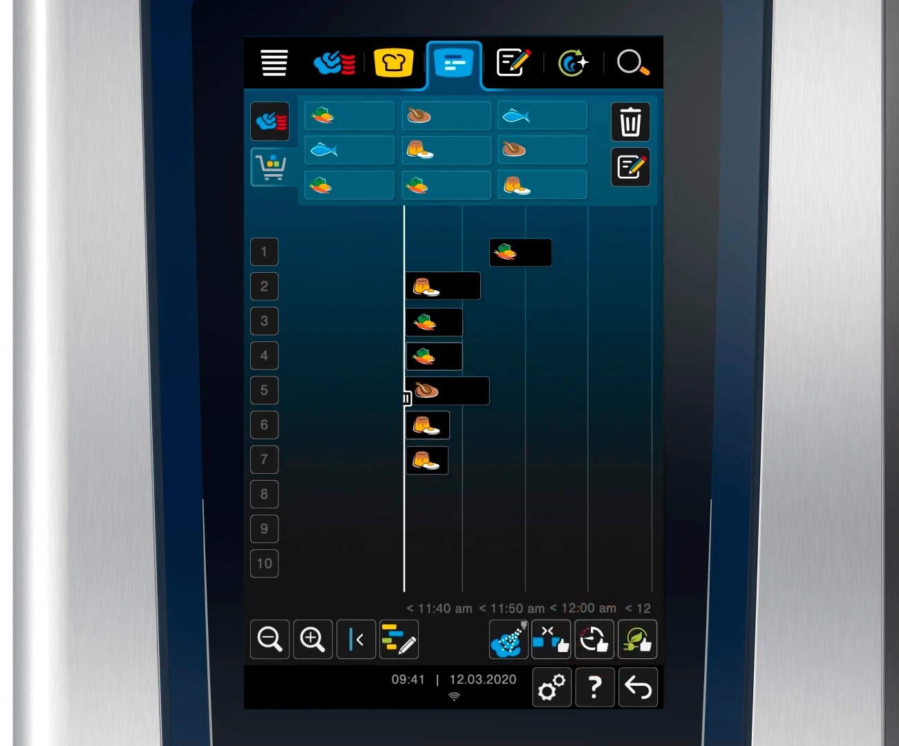 Инструмент автоматического планирования и контроля iProductionManager обеспечивает оптимальную организацию нескольких процессов приготовления и смешанную загрузку. Автоматически закрывает пробелы в планировании. Автоматически планирует время и расход энергии, приготовление к заданному времени, позволяя начинать и заканчивать приготовление в то же время.