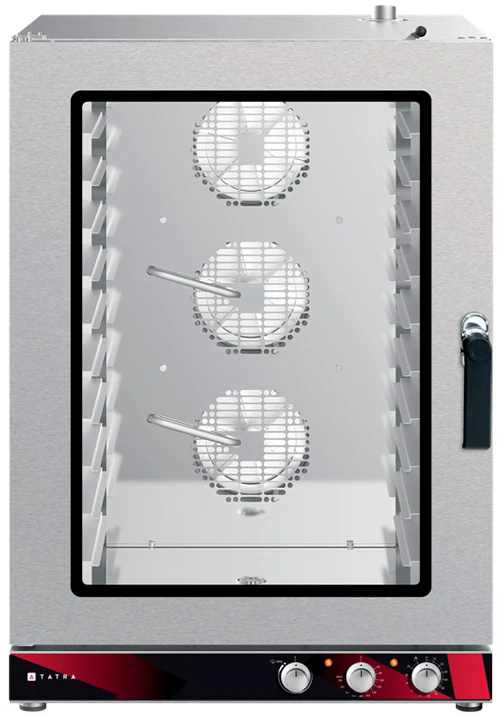 Пароконвектомат Tatra TB10M1L пекарский предназначен для использования на предприятиях общественного питания для выпекания различных кондитерских и хлебобулочных изделий из свежего и замороженного теста с применением режимов сочетания конвекции и пара.