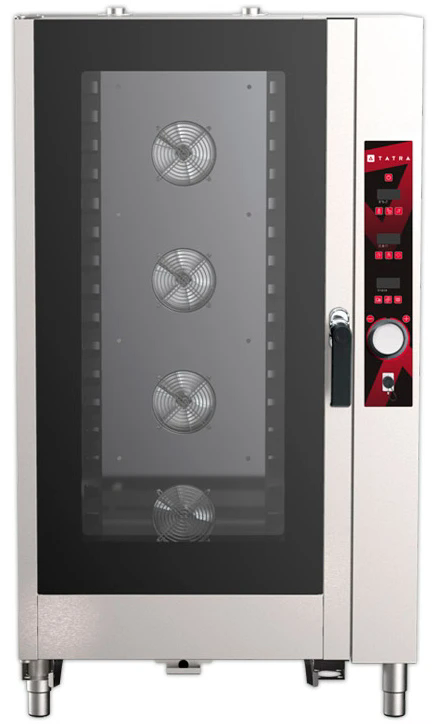 Пароконвектомат Tatra TPI 20 DC.2V предназначен для использования на предприятиях общественного питания для приготовления различных блюд с применением режимов сочетания конвекции и пара. Фактически пароконвектомат может заменить собой несколько типов теплового оборудования, таких как конвекционная печь, жарочный шкаф, пароварка, плита и сковорода.