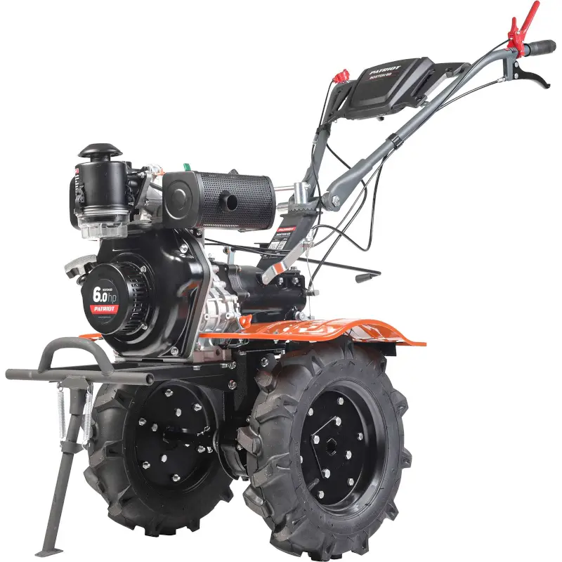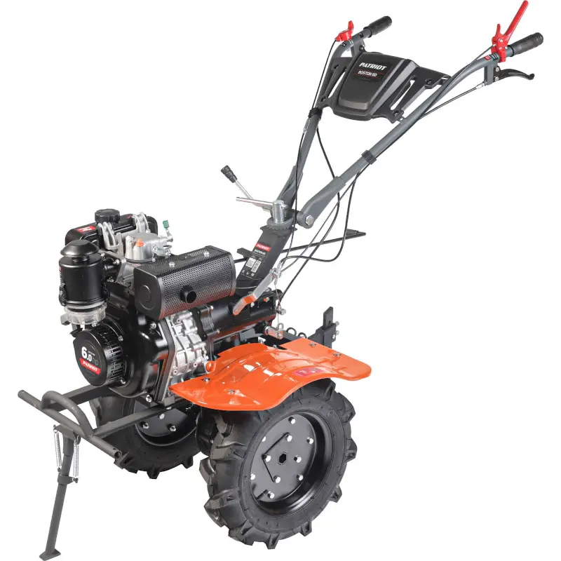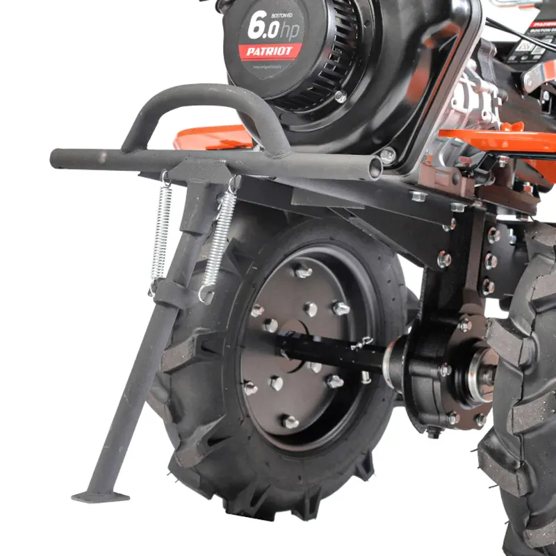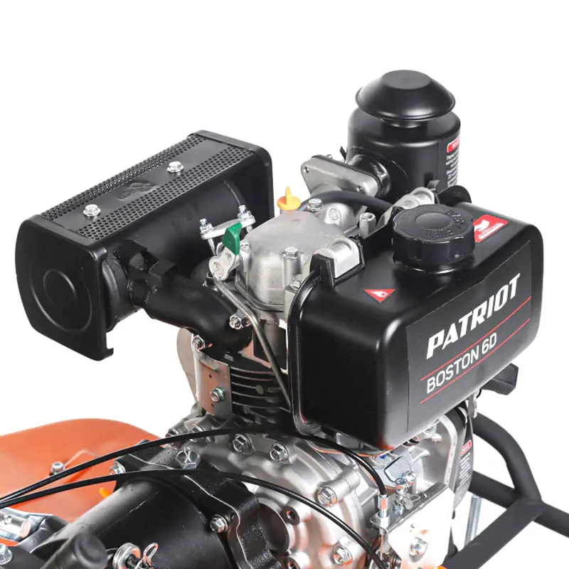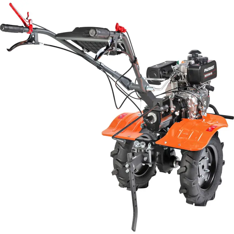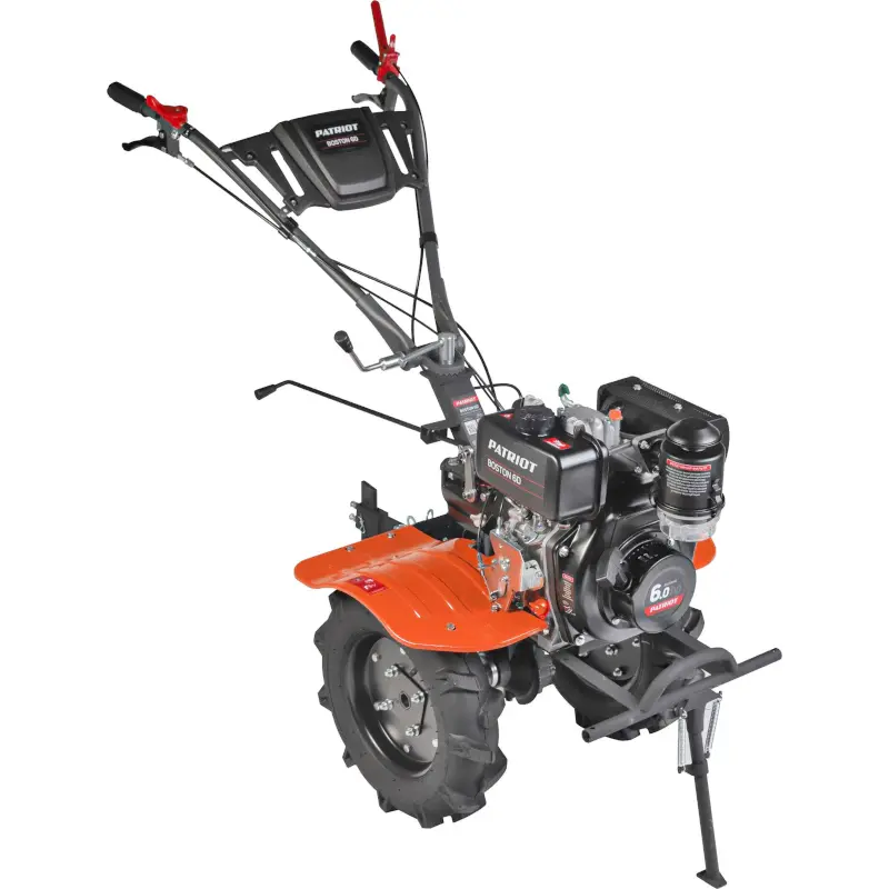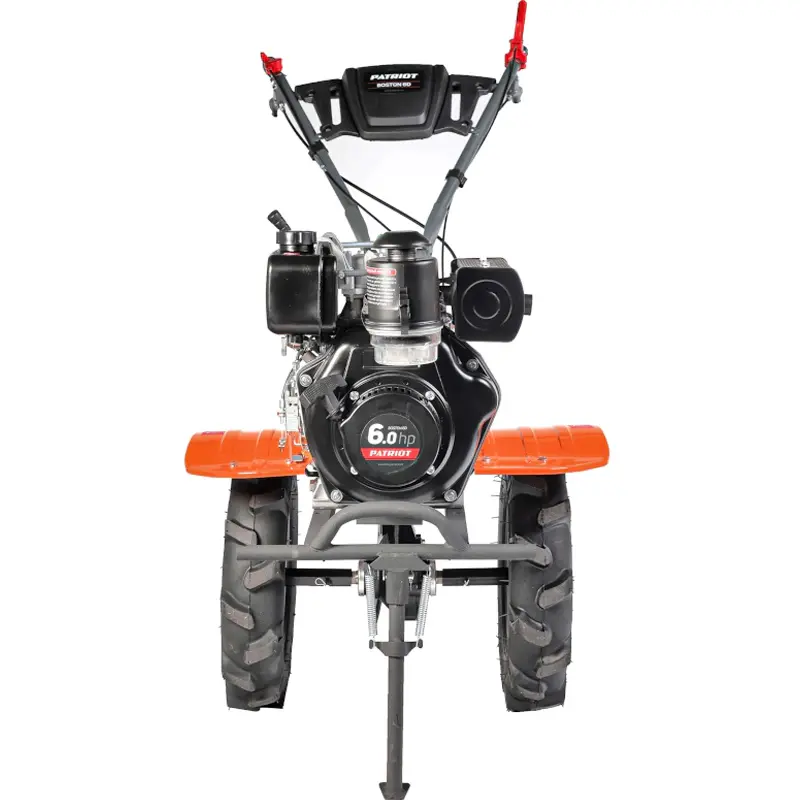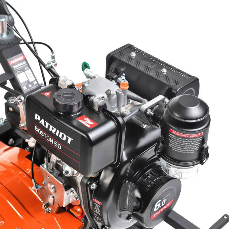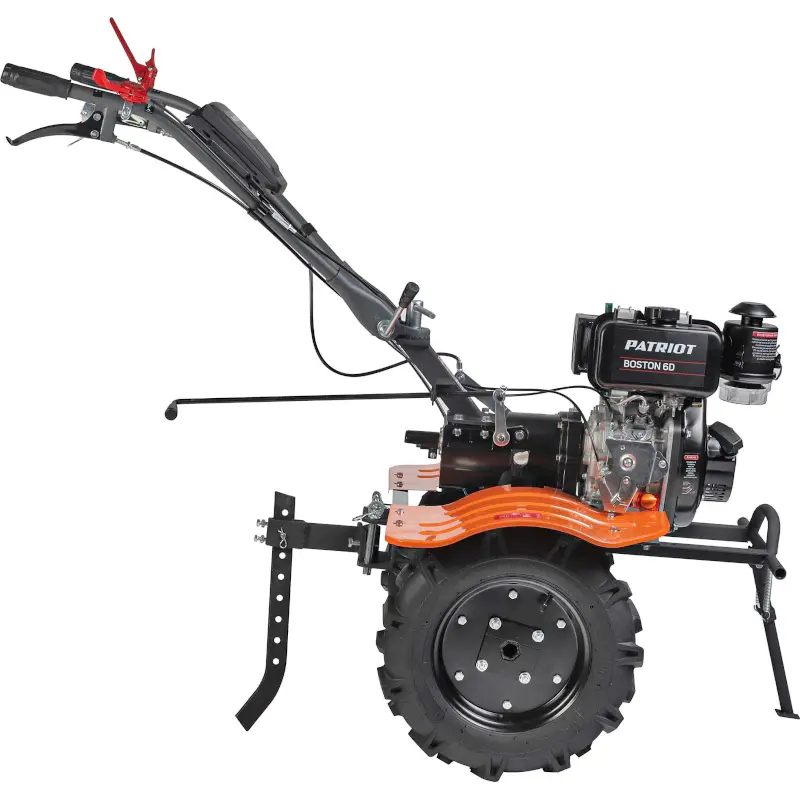 Дизельный мотоблок Patriot Boston-6D обеспечивает ширину обработки в 105 см и поставляется в комплекте с фрезами, которые способны вспахать даже целину. Для облегченной работы предусмотрено несколько скоростей движения, большие колеса тракторного типа и возможность установки навесного оборудования: от картофелевыкапывателя и плуга до грузовой тележки.