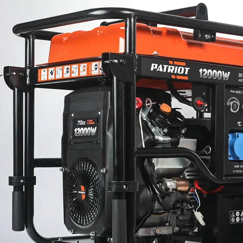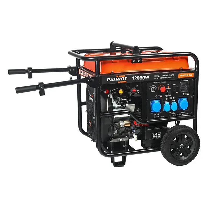 Бензиновый генератор PATRIOT GP 15010ALE - однофазный источник питания с максимальной мощностью в 12 кВт. Агрегат можно использовать в качестве как постоянного, так и аварийного источника питания. А встроенная система защиты от перегрузок не позволит подключенным приборам выйти из строя.