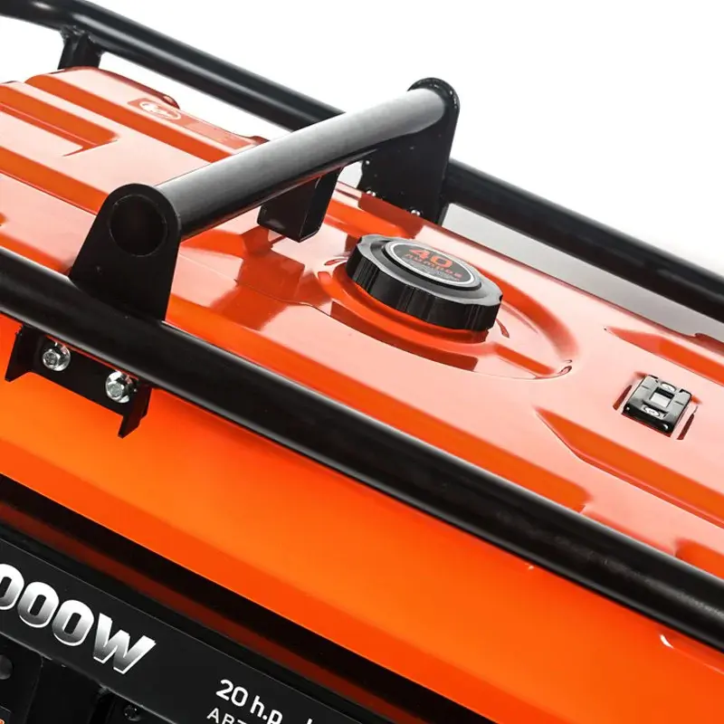 Мощности бензинового генератора будет достаточно для обеспечения энергией небольшого дачного дома или объектов уличной торговли. Электростанция также будет полезна на строительных площадках и в автосервисах. Большой объем бака для горючего обеспечит стабильную работу на протяжении 8 ч. при 100 % нагрузке.