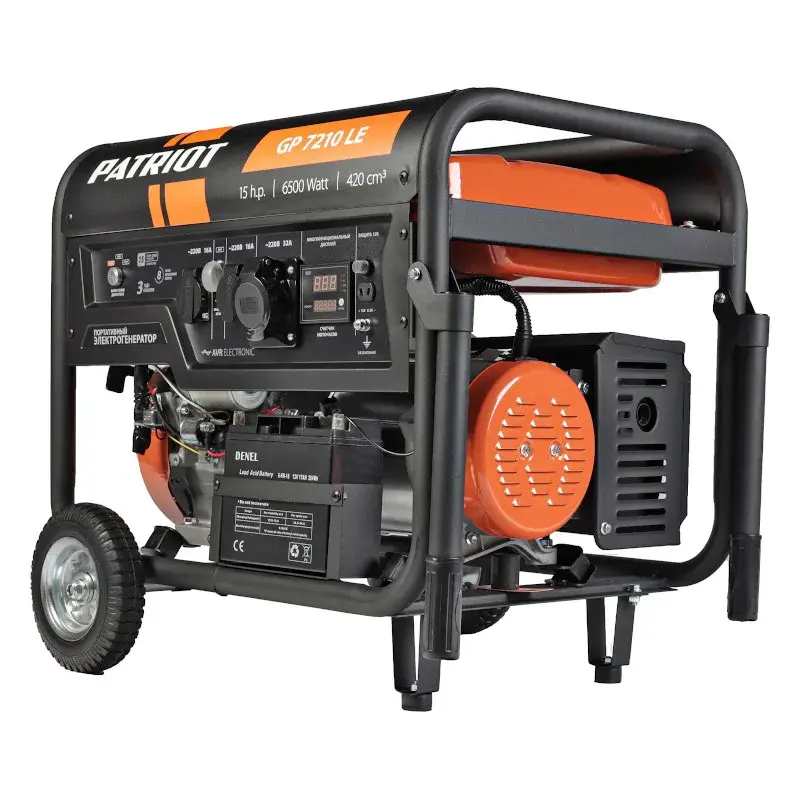 Генератор бензиновый Patriot GP 7210LE применяется в качестве аварийного или автономного источника электроэнергии для питания мощных бытовых электроприборов, электроинструмента, небольших станков, сварочных аппаратов. Оптимальное соотношение мощности двигателя и электрогенератора обеспечивает стабильную работу на номинальной мощности.