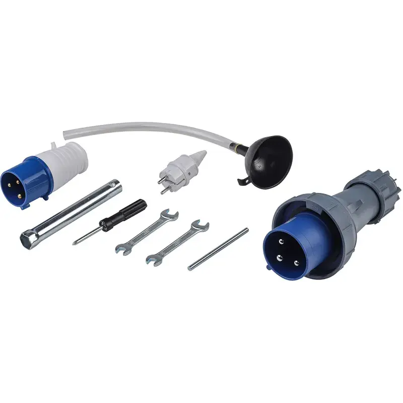 Электрооборудование, потребляющее однофазный ток, можно подключать к четырем розеткам с током 16 А, 32 А и 63 А. Электростанция также имеет возможность установки дополнительного блока для автоматического перехода на резервное питание, если в центральной сети пропадает напряжение. Выходы постоянного тока могут использоваться для зарядки автомобильных 12-вольтовых батарей. Одной заправки бензобака хватает на 10 часов автономной работы.