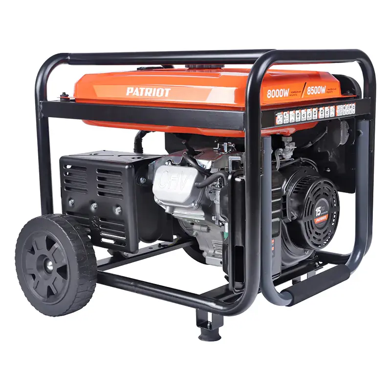 Бензиновый генератор PATRIOT снабжен 4-тактным мотором мощностью 15,1 л.с. со встроенным контроллером управления. Двигатель типа Hemi-Head обеспечивает оптимальное сгорание топлива и более высокую мощность, чем традиционный OHV-двигатель. Электростартер позволяет запустить генератор поворотом ключа в замке зажигания. Для запуска после долгого простоя или при разряженном аккумуляторе пригодится ручной стартер.