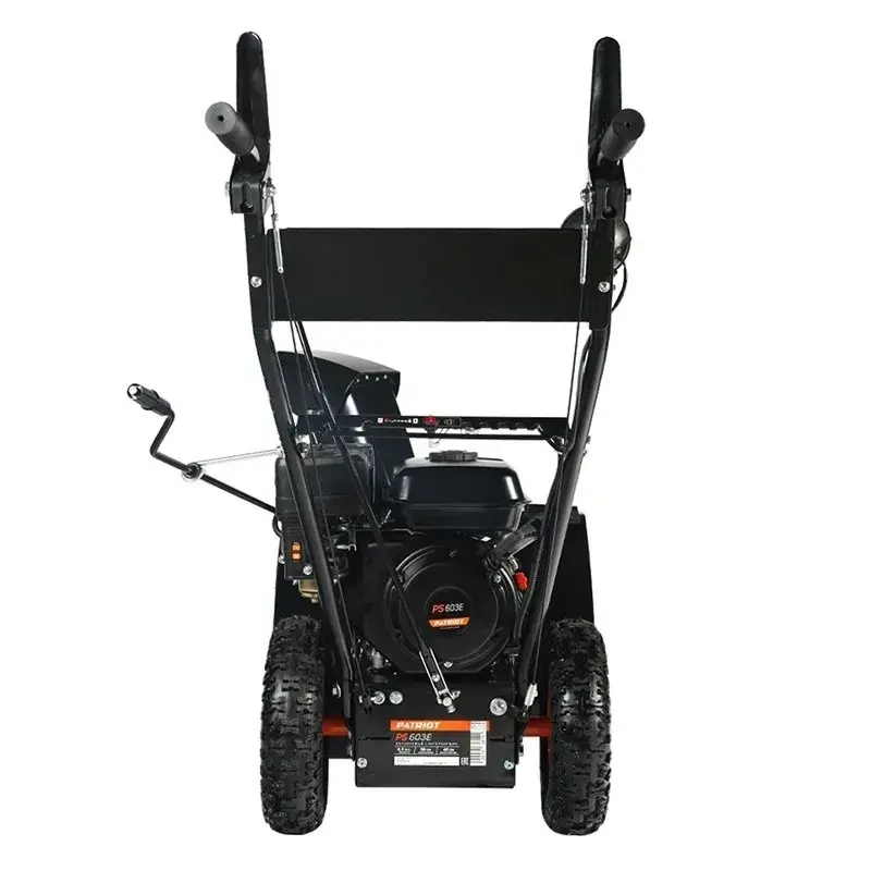 Снегоотбрасыватель Patriot PS 603 E оборудован эргономичными прорезиненными рукоятками, которые обеспечивают надежный контроль над машиной. На выходном желобе установлена решетка, которая предотвращает выброс твердых предметов, попавших в заборный ковш.