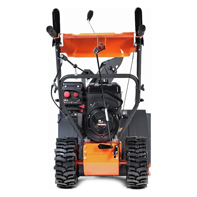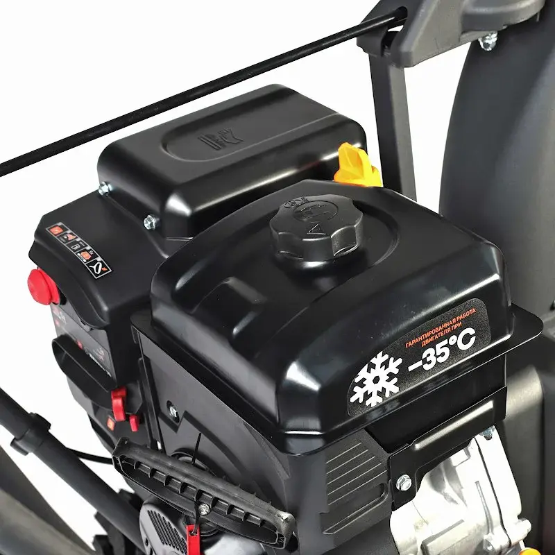 Большой ковш позволяет захватывать сугробы высотой до 53 см. Это поможет сохранить ухоженный вид участка даже после обильного снегопада.