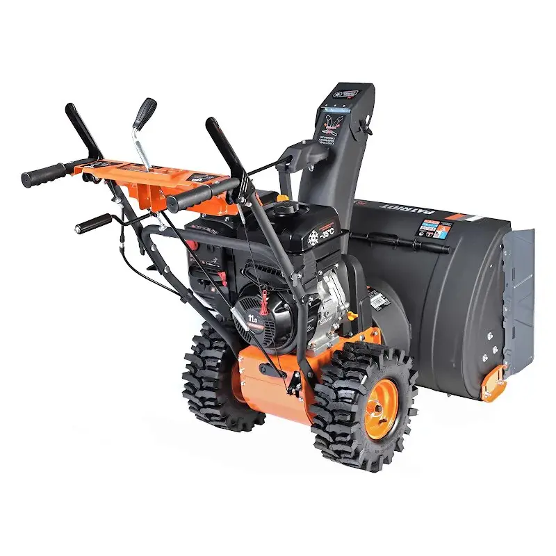 Бензиновый снегоуборщик Patriot PS 911 с ковшом шириной 81 см позволит эффективно убрать сугробы с участка площадью 2000 м2. Для комфортного использования предусмотрен поворотный желоб, а также несколько скоростей передвижения.