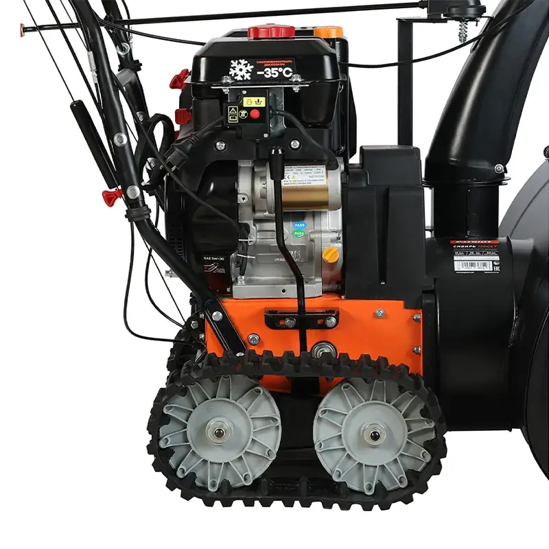 Для стабильной работы на морозе предусмотрен “зимний” двигатель. Мотор выдерживает температуру до - 35 °C. При этом для его запуска не требуется прилагать усилия, чтобы вытягивать тросик. Снегоуборщик включается нажатием одной кнопки.