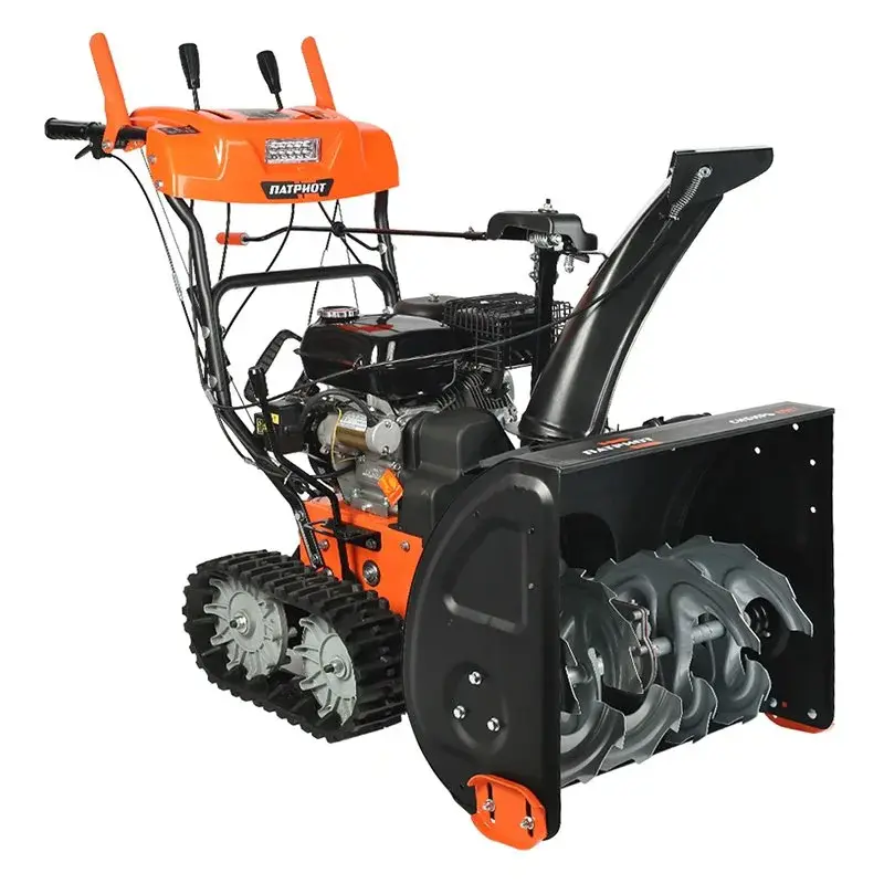 Бензиновый снегоуборщик Patriot Сибирь 85 ЕТ за один проход очищает дорожку шириной 71 см, что отлично подходит для участков максимальной площадью до 800 м2. Модель оснащена гусеничным приводом для простого перемещения по неровностям и ямам. Есть подогрев рукояток и светодиодный фонарь.