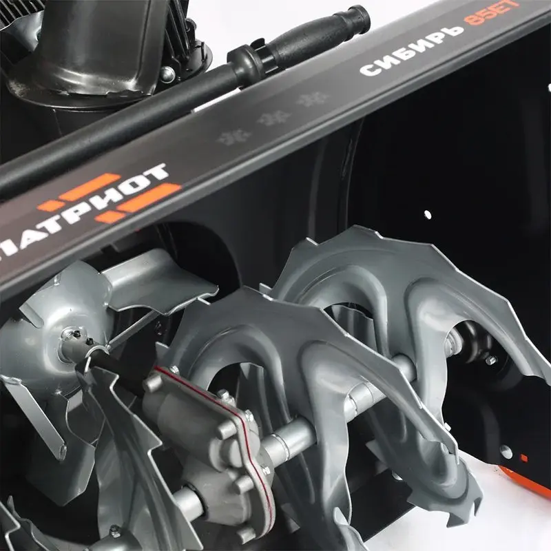 Двигатель самоходного снегоуборщика Patriot Сибирь 85 ЕТ запускается двумя способами, от ручного стартера или электрозапуска. В первом случае понадобится вытягивать тросик, прикладывая усилия. Но такой способ позволит запустить даже холодный двигатель. При использовании электростартера на включение модели у вас уйдет не более 3 с.
