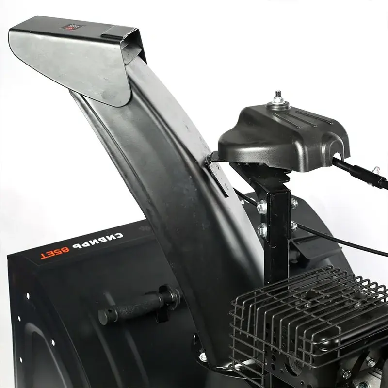 В снегоуборщике установлен прочный металлический шнек с зубцами. Такой механизм быстро перемалывает плотные комки снега, смешанные с грязью, а также обледеневшие сугробы.