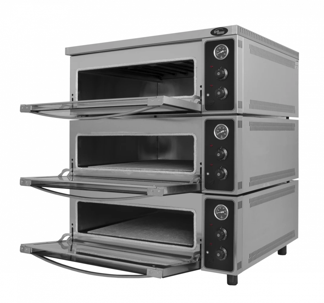 Печь для пиццы Grill Master ППЭ/3 (22129) с природным вулканическим камнем используется на предприятиях общественного питания и торговли для выпекания пиццы. Прекрасно подходит для пиццерий, кафе, ресторанов.Особенности