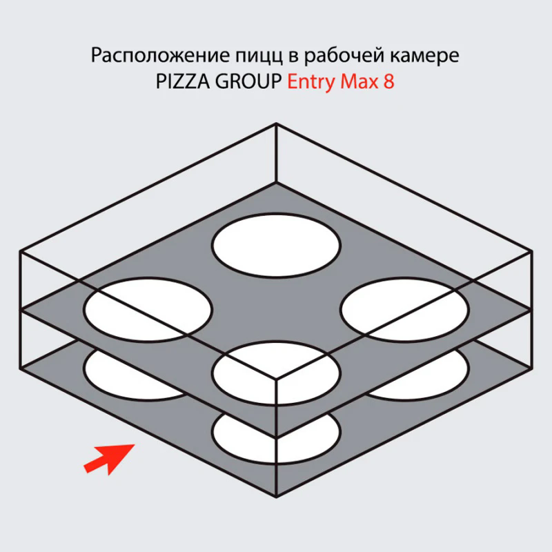 _Печь для пиццы Pizza Group Entry Max 8 - электрическая печь с механическим управлением, с огнеупорной поверхностью на поде и стальными ТЭНами, расположенными ступенчато на своде, чтобы обеспечить меньшее падение температуры рядом с дверью.