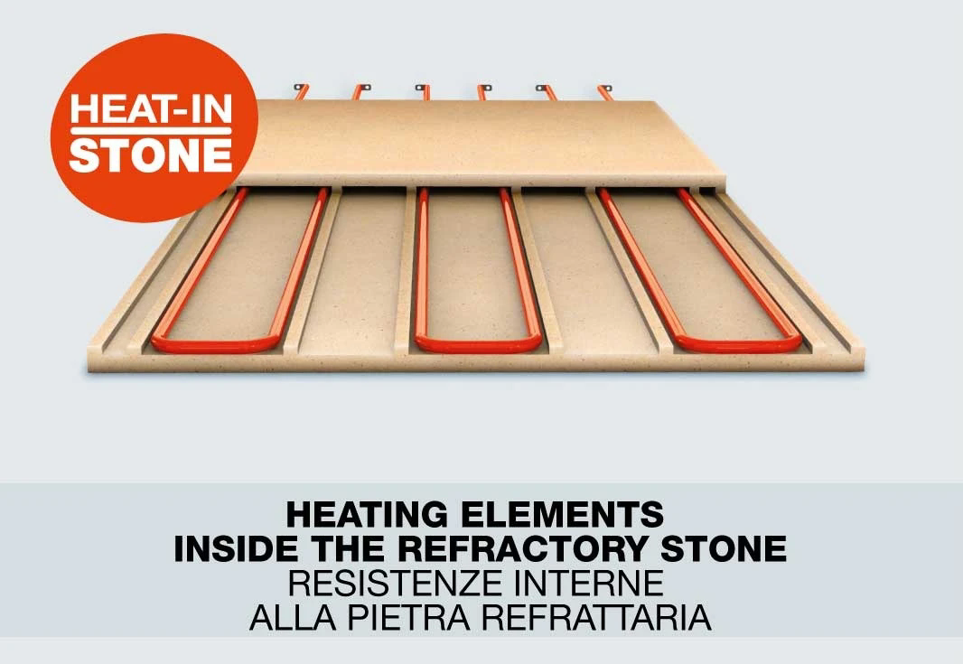 Внутренние нагревательные элементы установлены внутри огнеупорного камня.