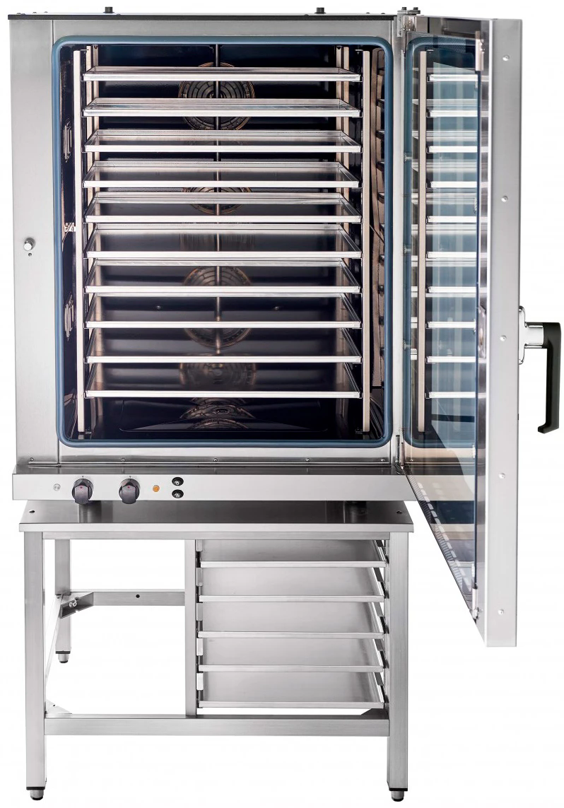 Дверца с двойным жаропрочным остеклением с воздушной прослойкой исключает возможность получения ожогов при работе с оборудованием