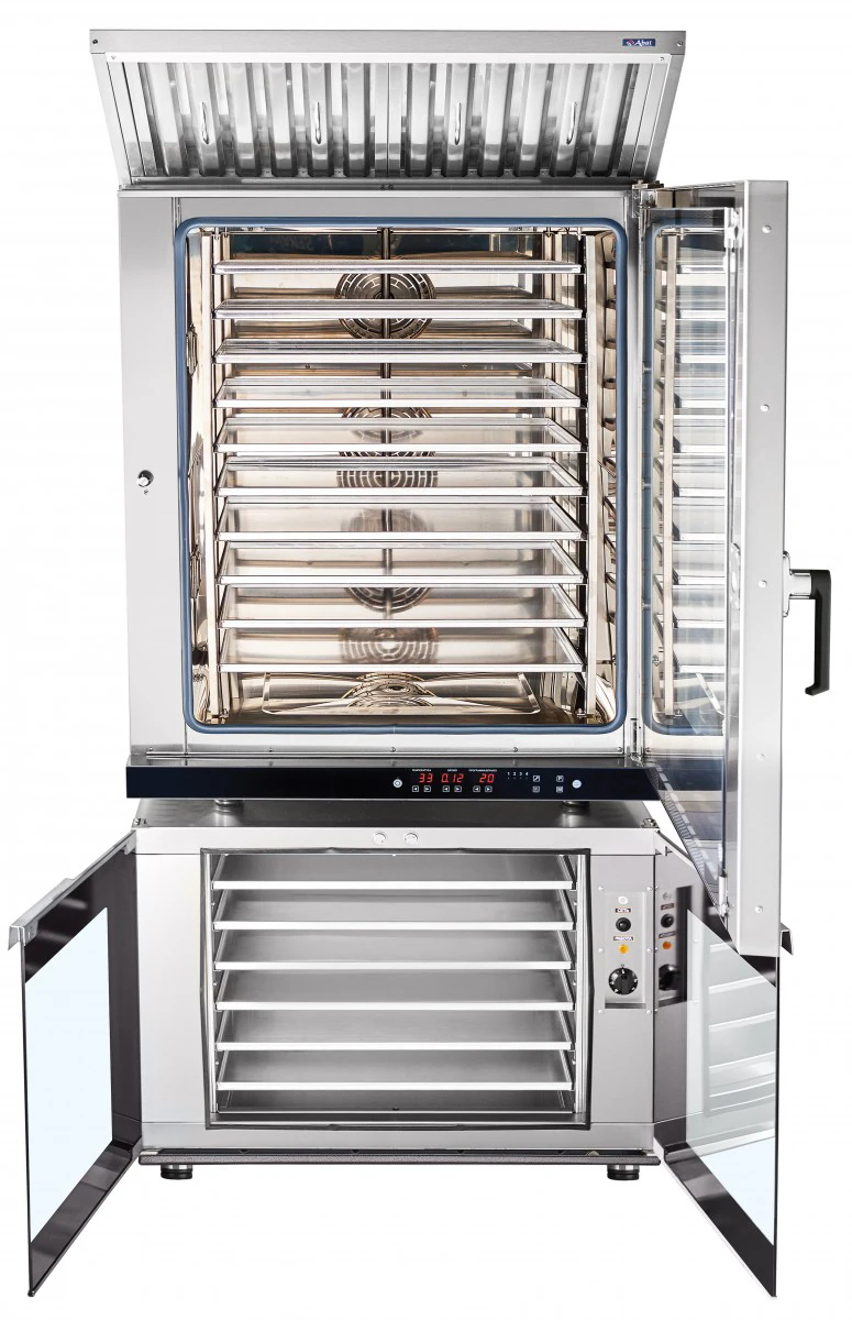 Дверца с двойным жаропрочным остеклением с воздушной прослойкой исключает возможность получения ожогов при работе с оборудованием