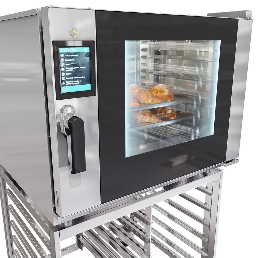 Печь можно использовать как самостоятельно, так и в составе технологической линии. Она легко интегрируется в Вашу систему приготовления пищи и обеспечит высокую производительность.