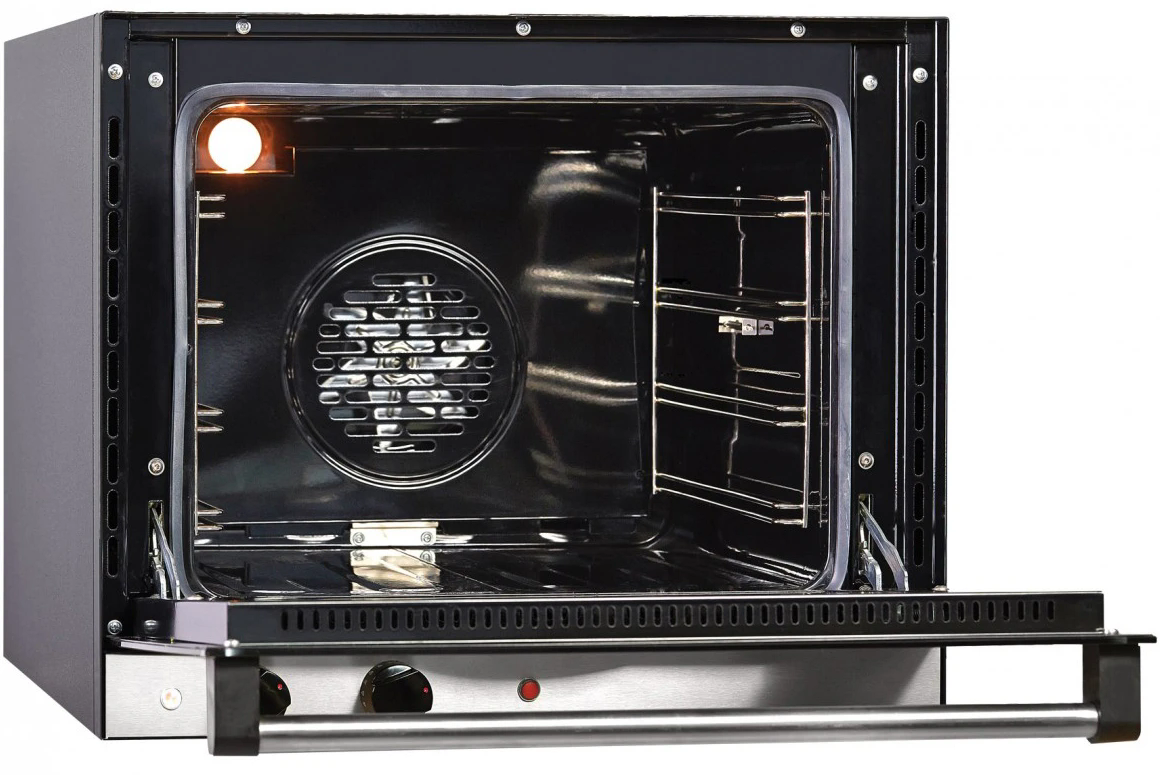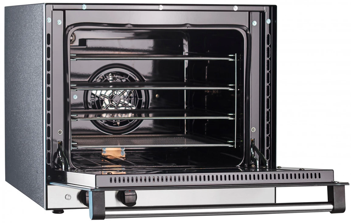 Термообработка продуктов осуществляется за счет равномерной циркуляции горячего воздуха внутри рабочей камеры.