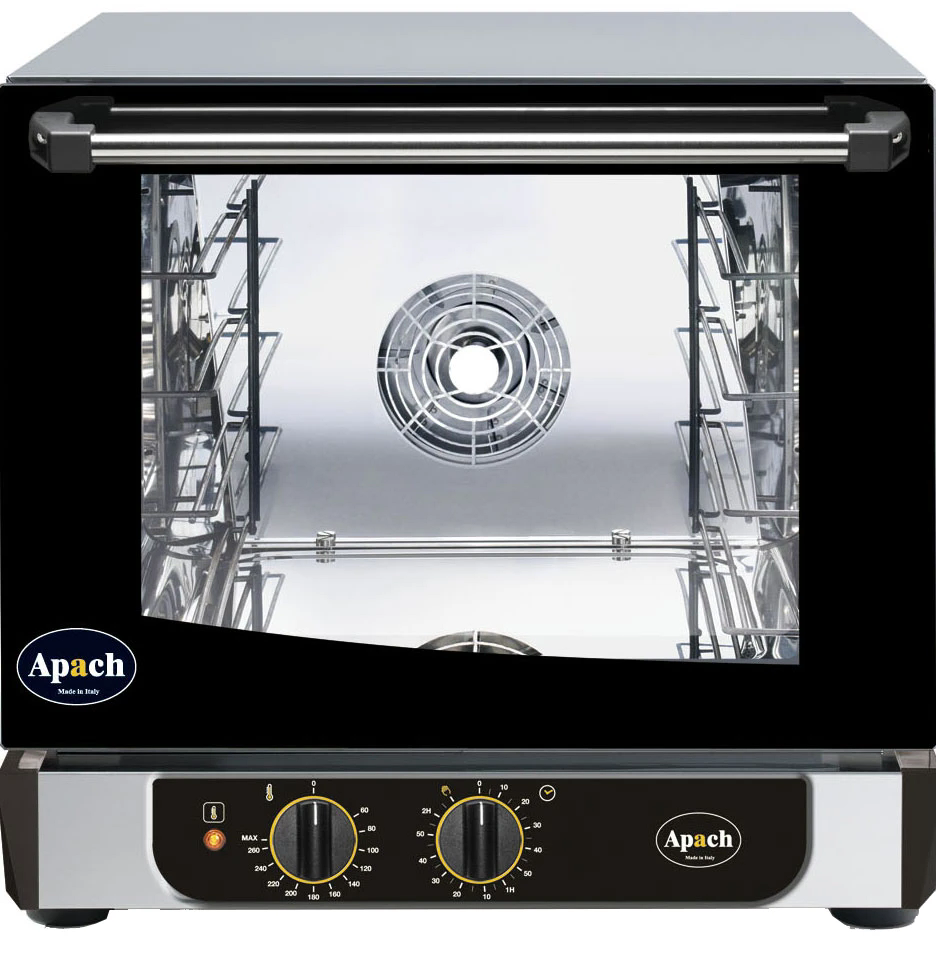 Печь конвекционная электрическая Apach AD44M Eco предназначена для выпекания или разогрева кондитерских и хлебобулочных изделий, готовых блюд, замороженных или предварительно выдержанных в расстоечном шкафу заготовок из теста на предприятиях пищевой промышленности, общественного питания и торговли.