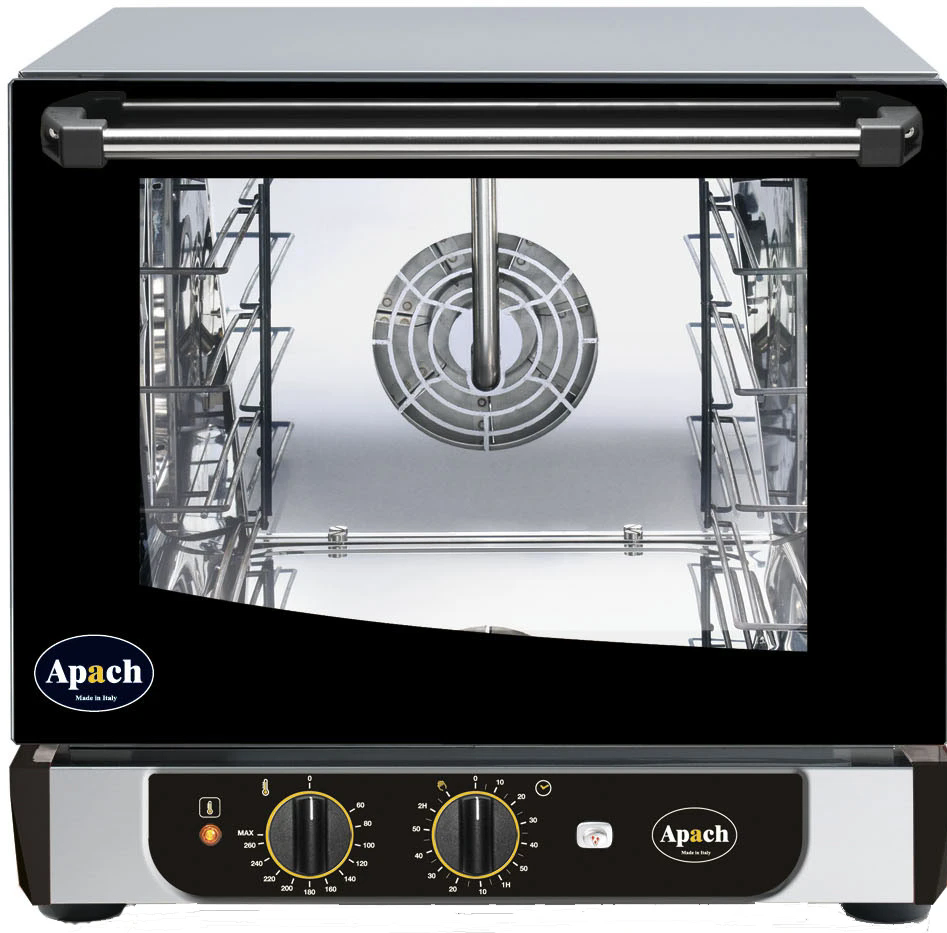 Печь конвекционная электрическая Apach AD44M со встроенной помпой - идеальное решение для малых заведений, где нет возможности подключить печь к водопроводу.
