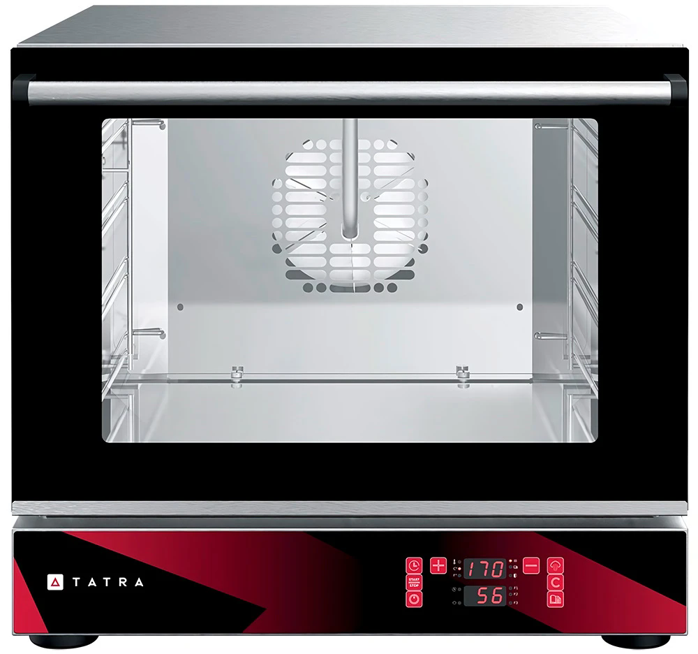 Печь конвекционная электрическая Tatra TO44DIHS предназначена для использования на предприятиях общественного питания малого и среднего формата для выпекания различных кондитерских и хлебобулочных изделий из свежего и замороженного теста с применением режимов сочетания конвекции и пара.