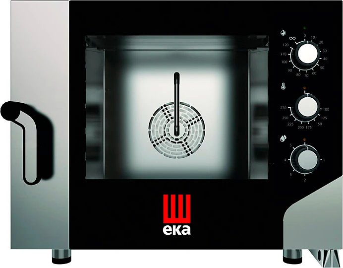 Печь конвекционная электрическая Tecnoeka MKF 464 S серии Millenial Smart используется для выпечки мелкоштучных булочных и кондитерских изделий, однако за счет возможности установки температуры нагрева от 100 °C до 275 °C, в ней можно готовить замороженные полуфабрикаты и разогревать готовые блюда.