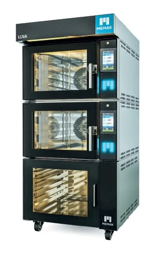 Печь конвекционная Memak LUNA-2-F с расстоечным шкафом и вытяжным зонтом, предназначена для выпекания или разогрева кондитерских и хлебобулочных изделий, готовых блюд, замороженных или предварительно выдержанных в расстоечном шкафу заготовок из теста на предприятиях общественного питания и торговли.