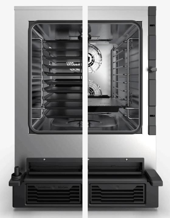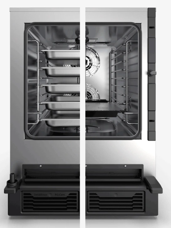 SPEED-X ™ - первая в мире высокоскоростная комбинированная печь с автоматической мойкой. Вместимость SPEED-X ™ - 10 противней GN 2/3 с шагом 35 мм или 5 противней GN 2/3 с шагом 70 мм в комбинированном режиме и противень SPEED.Plate для одновременного приготовления 4 блюд в скоростном режиме. Революционная технология HYPER.Speed - сочетание конвекции, пара и микроволн - значительно сокращает время приготовления сэндвичей и полуфабрикатов по сравнению с традиционными скоростными печами. Система мойки со встроенным контейнером для моющего средства упрощает очистку после скоростного приготовления овощей, мяса, рыбы и многого другого. Камера из нержавеющей стали AISI 316L в сочетании с системой фильтрации воды RO.Care позволяет подключать SPEED-X ™ к водопроводной сети без использования внешних фильтров даже в случае очень жесткой воды или воды с высоким уровнем хлоридов.