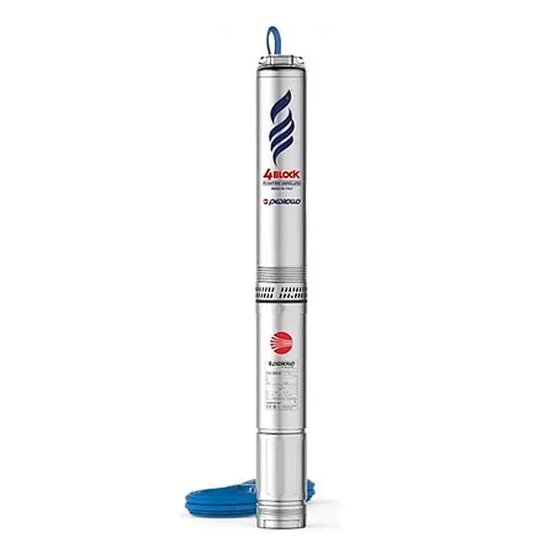 Фирма PEDROLLO предлагает на рынке электронасосов для 4-дюймовых скважин модель 4BLOCK, которая является одним из лидеров рынка по эксплуатационным характеристикам и в частности по стойкости к песку, которая гарантируется до 150 г/м3. Электронасос предназначен для эксплуатации в быту для подъема воды с содержанием песка до 150 г/м3. Моноблочный скважинный 4-дюймовый электронасос создан в качестве нового, более экономичного и надежного изделия. Насос поставляются в комплекте с конденсатором внутри двигателя и кабелем электропитания длиной 20 м, что облегчает и упрощает установку.