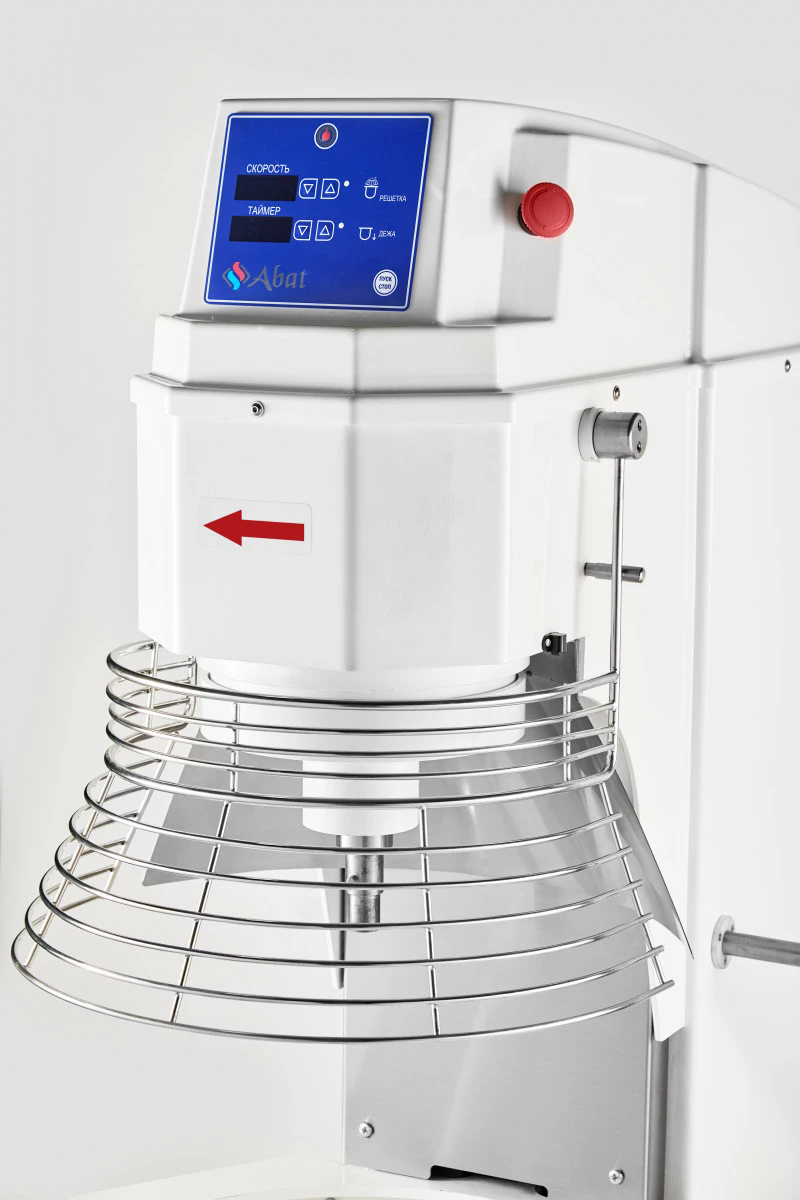 Откидная защитная решетка, защищающая персонал от вращающихся рабочих частей машины и позволяющая добавлять ингредиенты в дежу, не прерывая процесс замеса (при поднятии защитной решетки работа тестомеса автоматически прекращается).
