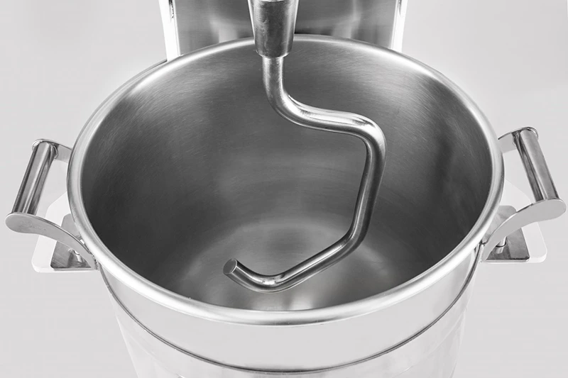 Объемная чаша на 40 л позволяет приготовить блюда на большое количество человек одновременно. Чаша и все насадки выполнены из аустенитной нержавеющей стали AISI 304, что обеспечивает долгую и надежную эксплуатацию на радость всем кулинарам.