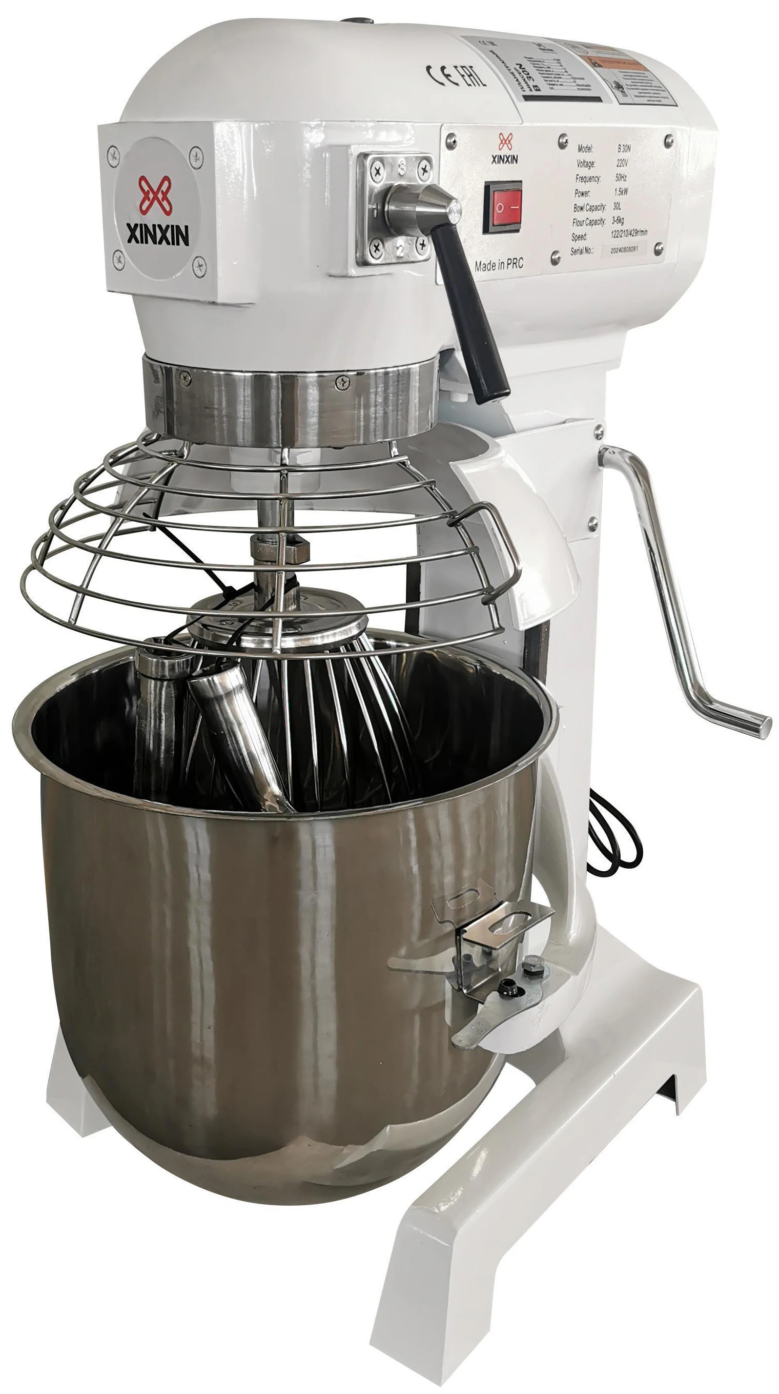 Планетарный миксер Xinxin B 30N предназначен для замеса различных видов теста (бисквитного, белкового, заварного, дрожжевого, слоеного), взбивания крема, сливок, яичного белка и яиц, а также для приготовления различных соусов и пюре.