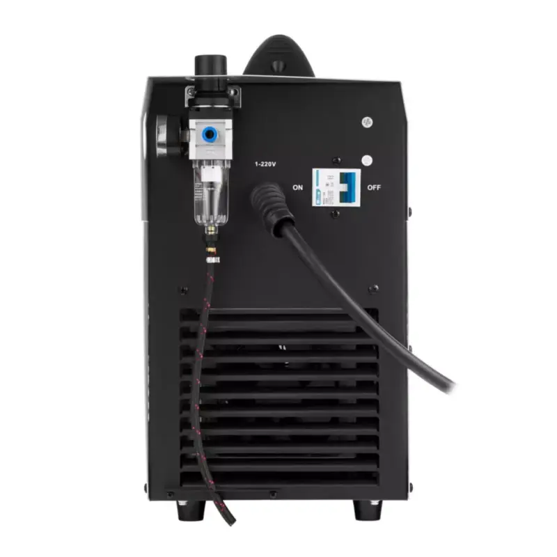 Плазморез имеет встроенный разъем для подключения к автоматическим системам ЧПУ, который располагается на лицевой стороне аппарата. На передней панели размещен цифровой дисплей, благодаря его понятному управлению и интерфейсу нового поколения, делает настройку параметров резки удобнее и быстрее.
