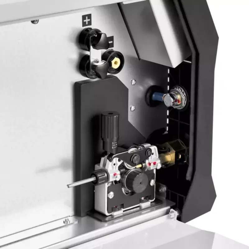 Аппарат оснащен металлическим 2-х роликовым механизмом подачи проволоки. В механизме установлен один ролик с габаритами 30х22х10 для стальной проволоки диаметром 0,8–1,0 мм и один ролик для стальной проволоки 30х22х10 диаметром 0,8–1,0 мм идет в комплекте. В комплект поставки к аппарату входит сварочная горелка для полуавтоматической сварки MIG 15 и горелка для аргонодуговой сварки TIG 26.