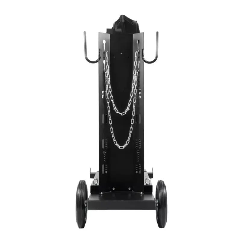 Оборудование поставляется в комплекте с тележкой для перемещения аппарата, подающего механизма и баллона с защитным газом. Тележка обладает надежной усиленной конструкцией, где толщина металла около 3 мм.