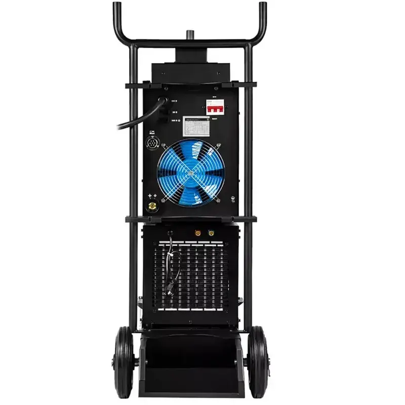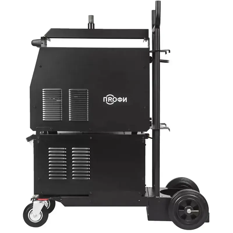 Полуавтомат ПРОФИ MIG 500 SYN FW поставляется с блоком водяного охлаждения объемом до 10 литров и с тележкой-платформой, для легкого и комфортного перемещения и эксплуатацию оборудования. Тележка оснащена надежной усиленной конструкцией. На нее можно установить сварочный источник, выносной подающий механизм, блок жидкостного охлаждения и газовый баллон объемом 40 литров.