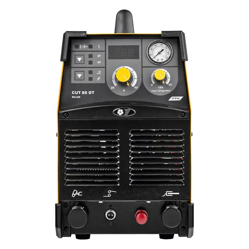 Бесконтактный поджиг дуги с высокочастотным управлением упрощает работу и увеличивает скорость резки. Инвертор обеспечит качественный тонкий рез, отсутствие деформации и коробления металла. Возможно переключение режимов работы плазменного резака — 2Т/4Т. Это обеспечивает удобство при выполнении коротких и длинных резов. Постпродувка газа увеличивает срок службы плазменного резака и его комплектующих.