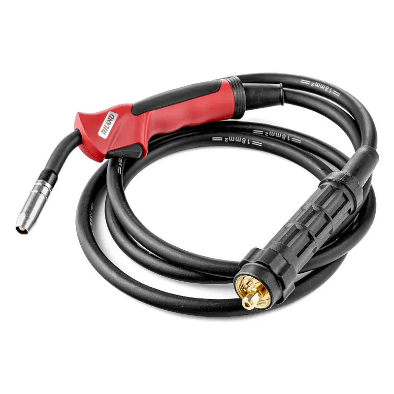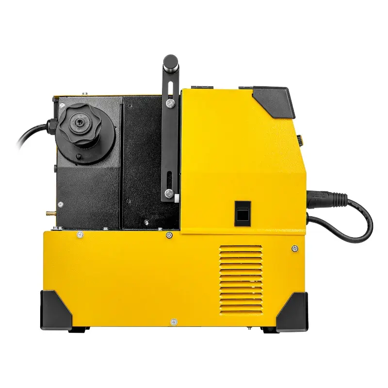 Горелка данного устройства поддерживает два режима сварки: 2-Т и 4-Т, что удобно для выполнения как коротких, так и длинных швов. Реле с индикатором сигнализирует о перегреве и необходимости временного прекращения сварки для охлаждения. Специальная кнопка позволяет прогонять проволоку без подачи газа, что полезно при замене катушек и настройке оборудования.