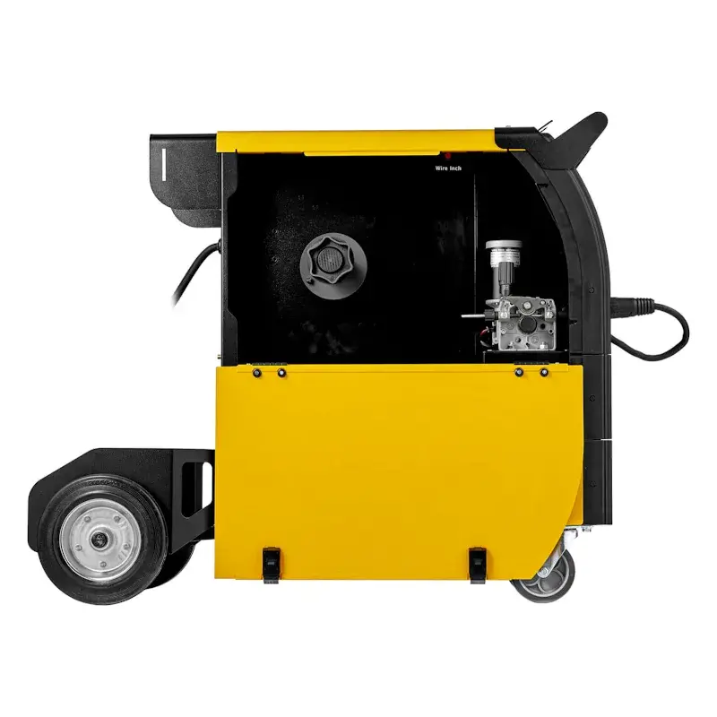 - Металлический механизм подачи проволоки. Используется сварочная проволока диаметром от 0,8 до 1,0 мм. Возможно установить катушку с проволокой весом до 18 кг (D300) и регулировать скорость подачи проволоки от 2 до 13 м/мин.